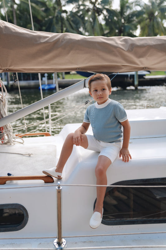 Heath Cable Sky Blue Short Sleeve Sweater SS26